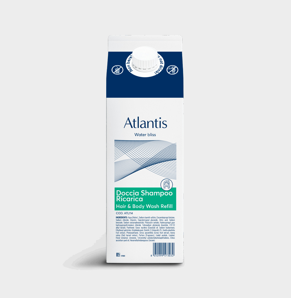Płyn do mycia włosów i ciała Atlantis nawilża i energetyzuje skórę. Oczyszcza włosy, nadając im blask dzięki formule z kwasem hialuronowym i ekstraktami z oleju kokosowego.