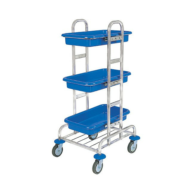 Chromowany wózek serwisowy Splast z trzema kuwetami.