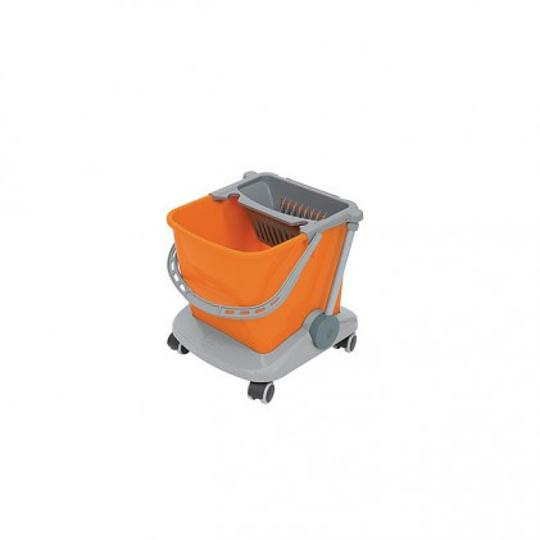wyposażenie standardowe:, -1. konstrukcja wózka Mikro I z tworzywa sztucznego kompletna KONS-0022,, -2. wiadro 25 l pomarańczowe WIAD-0029,, -3. wyciskarka Mikro I WYC-0001, –